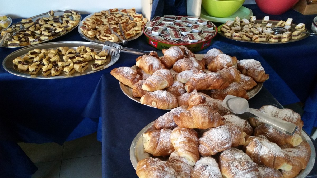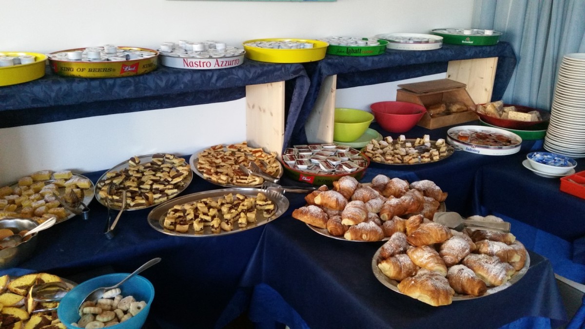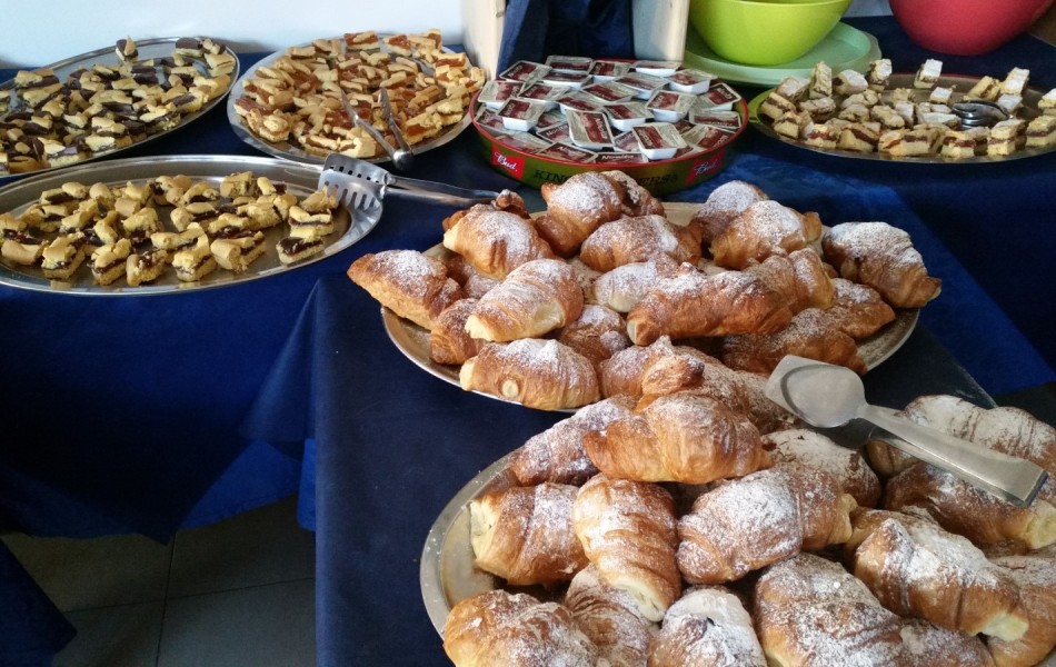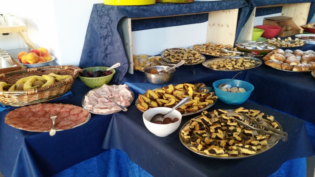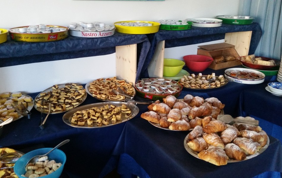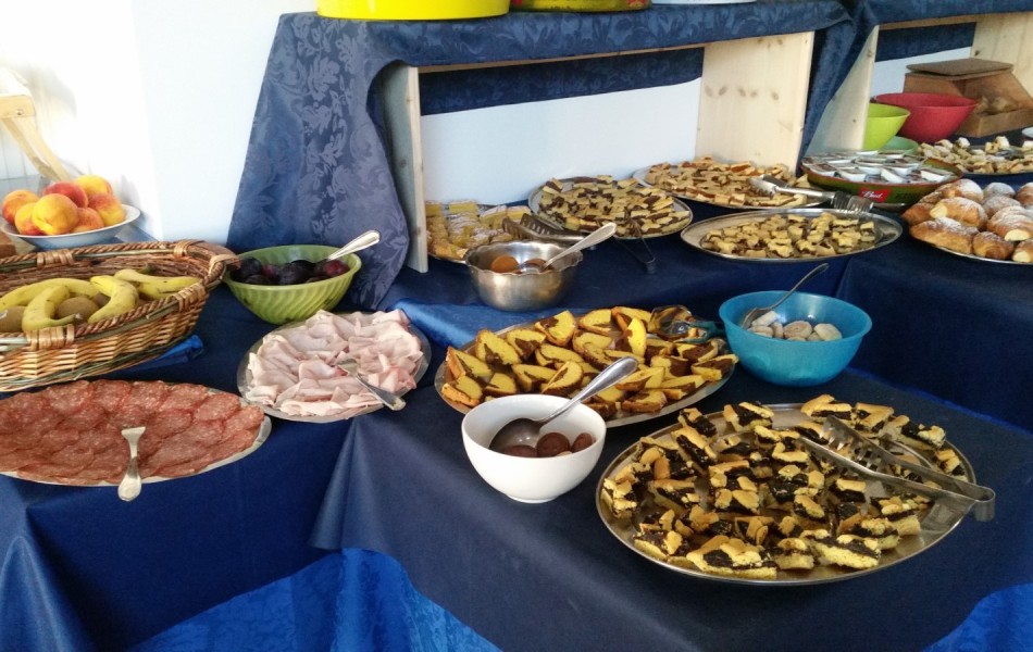 L'ospitalità comincia sin dal mattino con un ricco e stuzzicante buffet dolce e salato con pasticceria fresca fatta in casa, servito nella sala delle colazioni (anche sala bar) situata al piano terra.
