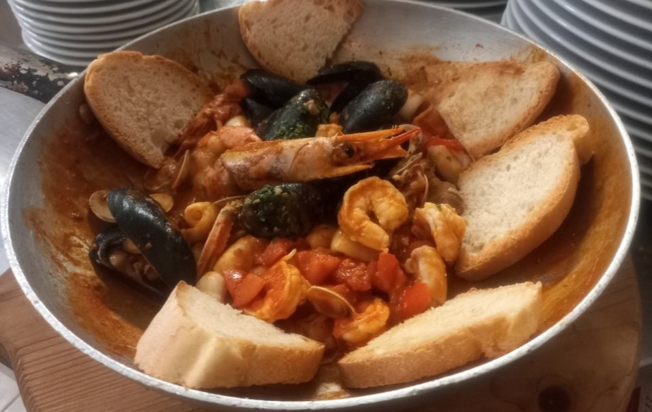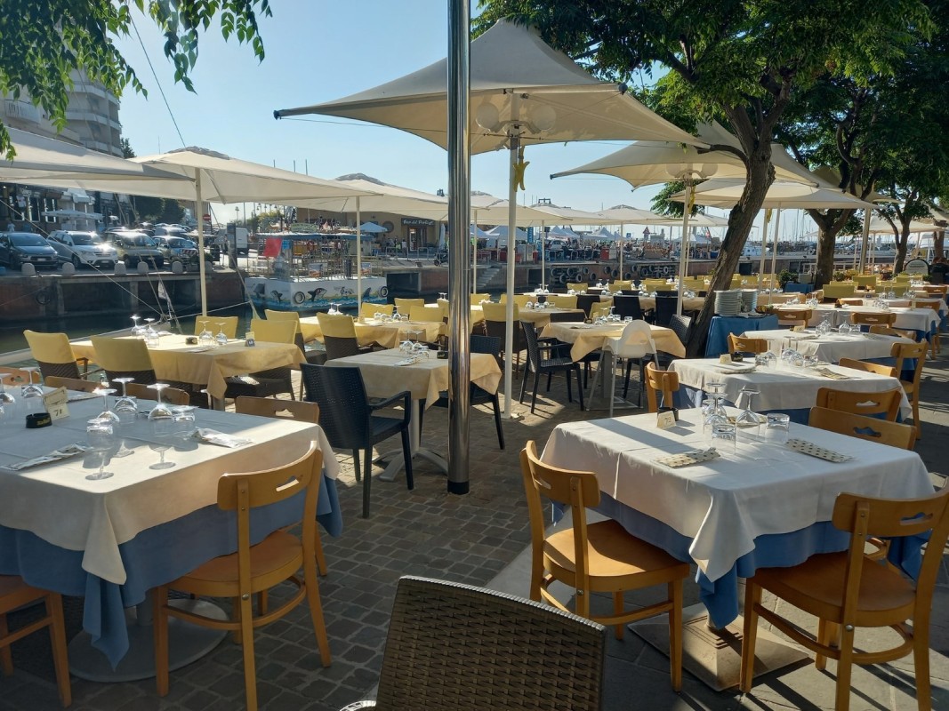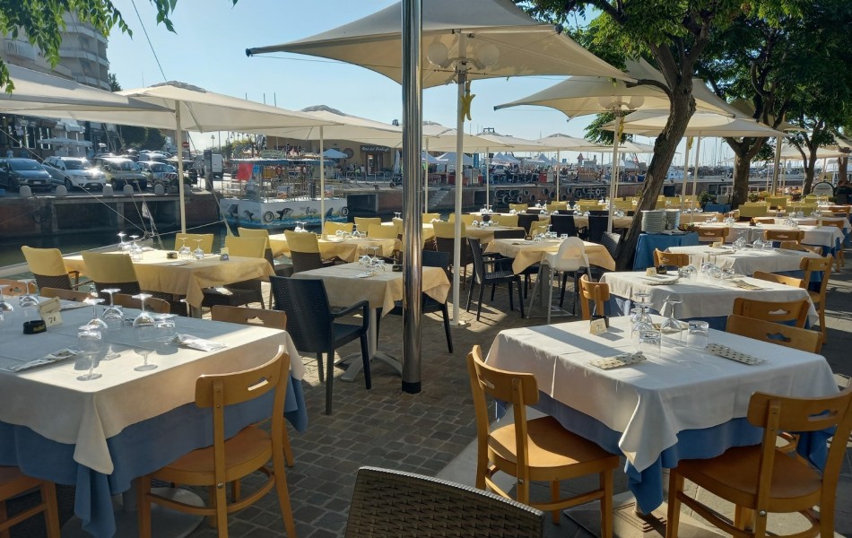 Ampie sale sia all'interno che all'esterno del locale ideali per tavolate o deliziosi "tete à tete" direttamente sul porto di Gabicce Mare vi attendono con piatti tradizionali e innovativi a base di pesce ma con anche deliziose alternative. Pasta e dolci fatti in casa, con un menù particolarmente curato e di qualità.